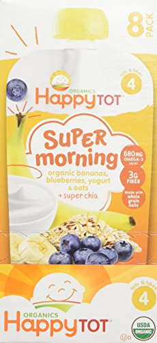 -. Title : Happy Tot Organics Super Morning, Organic Bananas, Blueberries, Yogurt & Oats + Super Chia, 4 oz (Pack of 8)