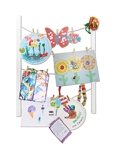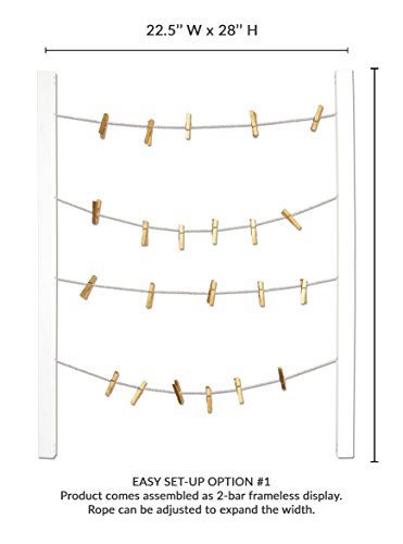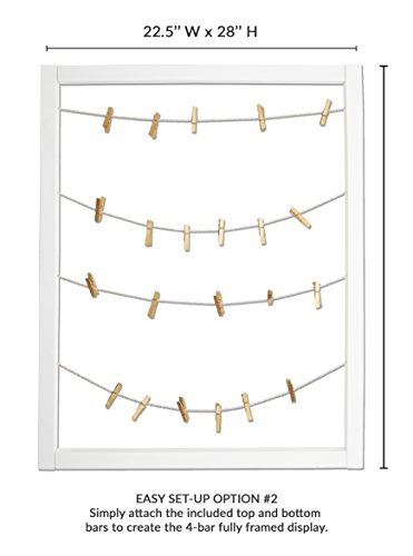 - EASILY REIMAGINE YOUR DISPLAY - Great for displaying kids artwork, inspiration boards, mood boards, and messages. The adaptable design allows you to easily rotate and interchange your hanging images between 4 lines of cotton rope or suede with 40 included coordinating clothespins. Fits multiple size images. Rope can be adjusted with attached rope clip and tucked into the side of the display.