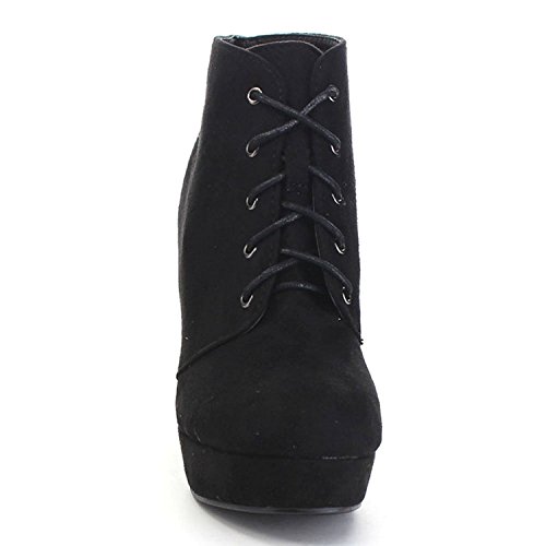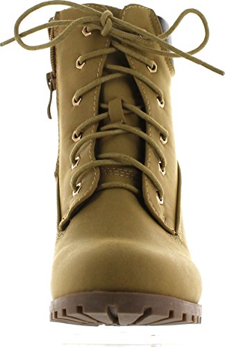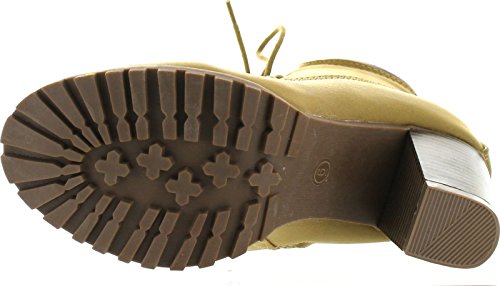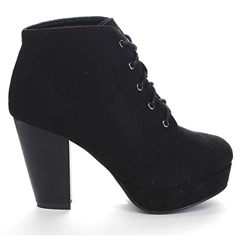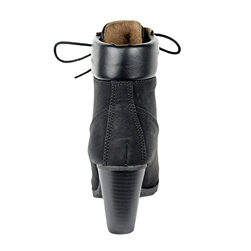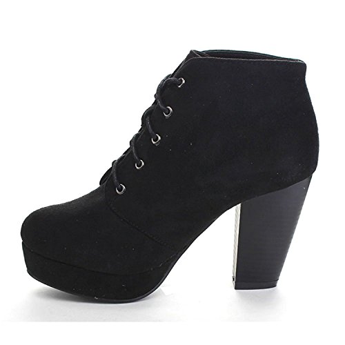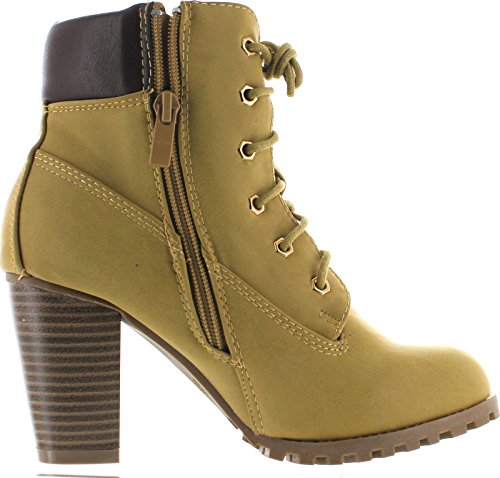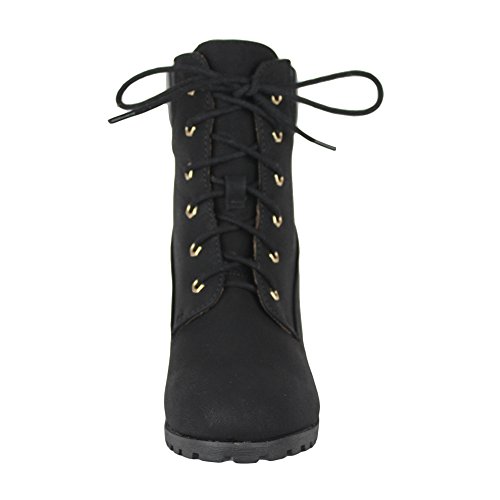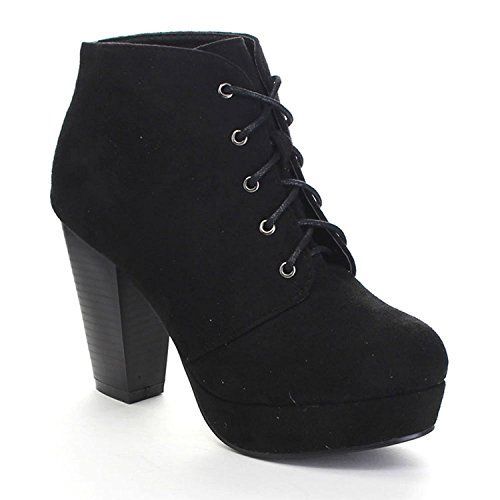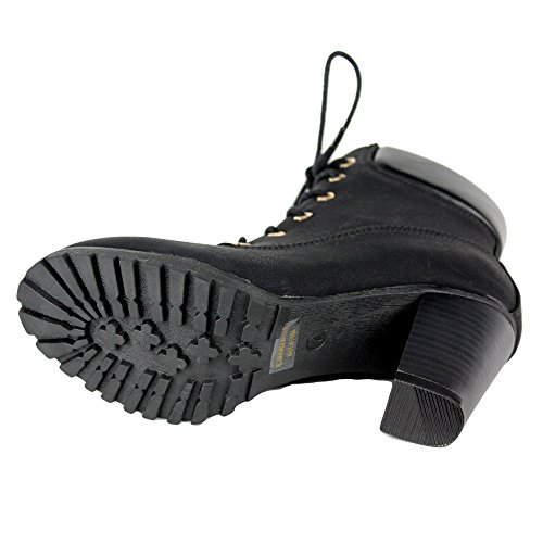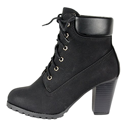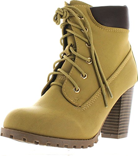 Womens Rugged Lace Up Stacked High Heel Ankle Boots