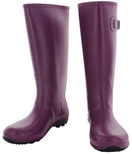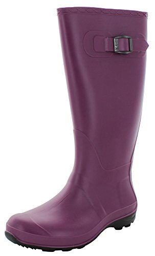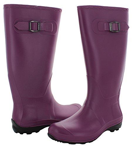 -. Feature : Rubber rainboot featuring decorative side buckle and removable comfort footbed