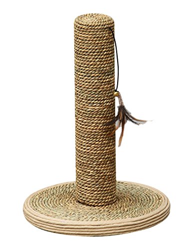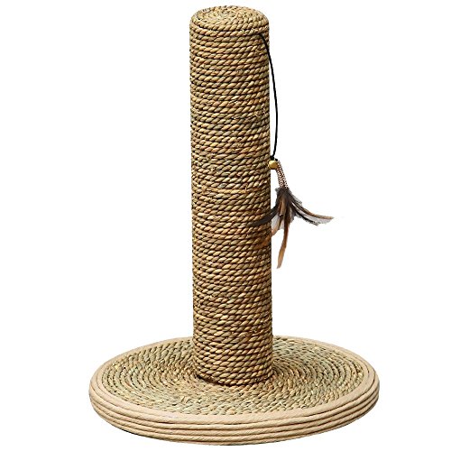 Product DescriptionNatural Seagrass Post with Feather Teasing Toys, for Scratch and Keep Your Cat Active - L x D x H: 10 x 10 x 15 inch.0