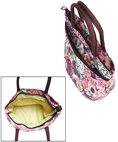 Double Pocket Japanese Blossom Pattern Lunch Bag Tote with Zipper and Handle