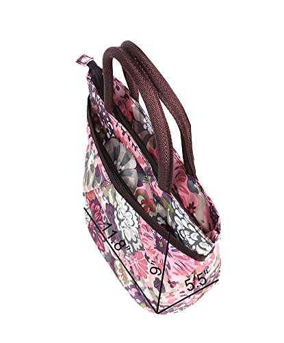 Stylish and cute purse shaped zipper lunch tote bag with a bright and colorful pattern replaces the boring brown lunch bag