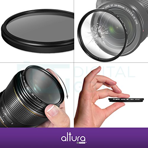 HIGH QUALITY FILTER KIT: 67mm Altura Photo 3 Piece Filter Kit (Ultraviolet UV, Circular Polarizer CPL, Neutral Density ND4) Filter kit provides great protection and enhances image quality to the highest degree. Perfect for everyday use.