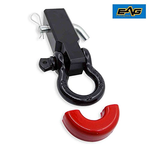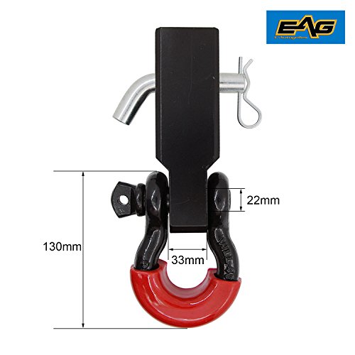 EAG Receiver Hitch D-ring with Black 3/4" Shackle for 2" Receivers Includes Red D-ring Isolators and Hitch Pin (51-0528)