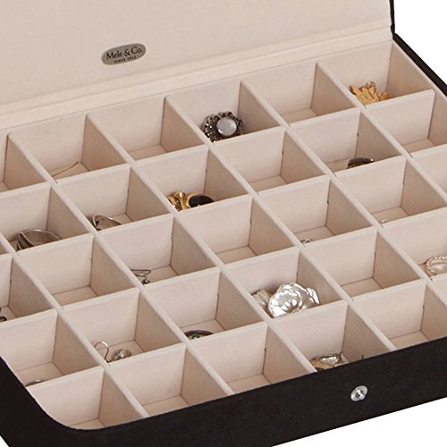 -. Title : Mele & Co. Cameron Plush Fabric 35 Section Jewelry Box in Black