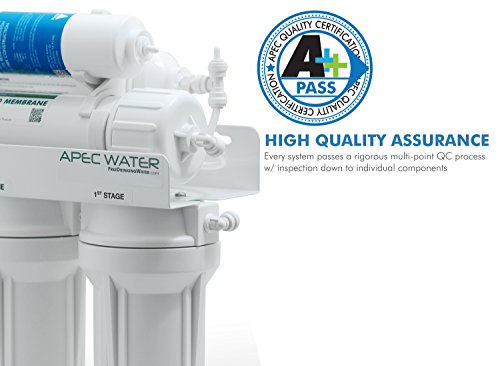 The ROES-PH75 is a 6-stage 75GPD reverse osmosis system that adds calcium minerals to enhance the water taste for people who prefer mineral water. This system's mineral cartridge adds only 100% US-made high-purity calcium carbonate to effectively raise pH in the water for those who desire alkaline water. Other re-mineralization RO systems will claim to add various beneficial minerals back into the water; however, their mineral formulations are often from unknown and uncertified sources that can lead to potential health concern. With the ROES-PH75, users will enjoy unlimited great tasting healthy water right at home for drinking and cooking. Save money, time, and from buying costly, bottled water and live healthier with ultra-safe pure mineral water that is contaminant; worry free. Assembled in the USA, this 6-stage water filtration system is made from high caliber components to deliver exceptional contaminant rejection rates and long-lasting, reliable performance. Based off APEC's 20 years of experience in RO design and production, this system will provide users with high-quality safe drinking water for many years to come.