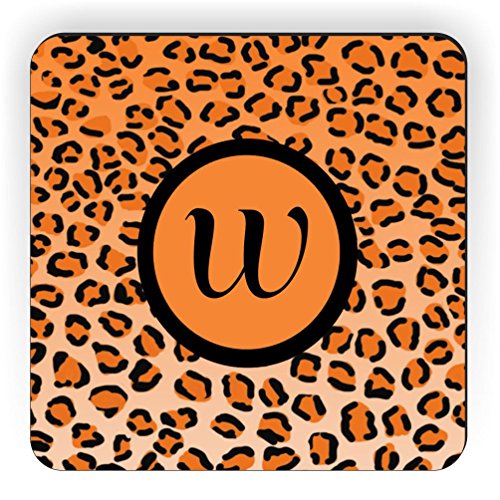 Rikki Knight Letter "W" Initial Orange Leopard Print Monogrammed Design Square Fridge Magnet