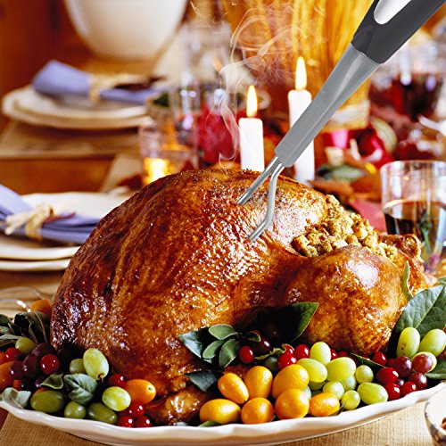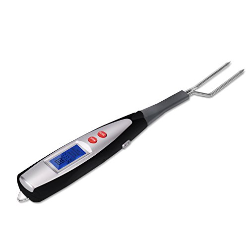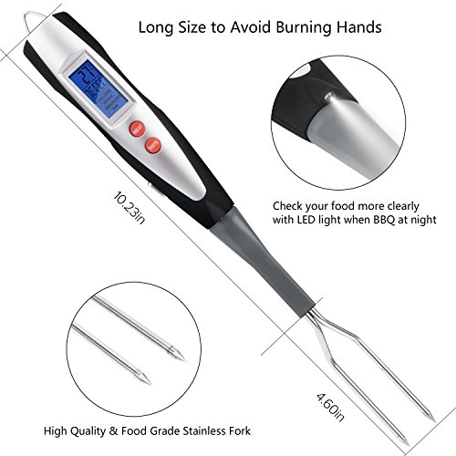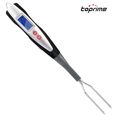 Digital Meat Fork Thermometer, Toprime Instant Read Digital Blue Backlit Kitchen Meat Thermometer with Long Forks and LED Light for Cooking and BBQ Grill(Black)