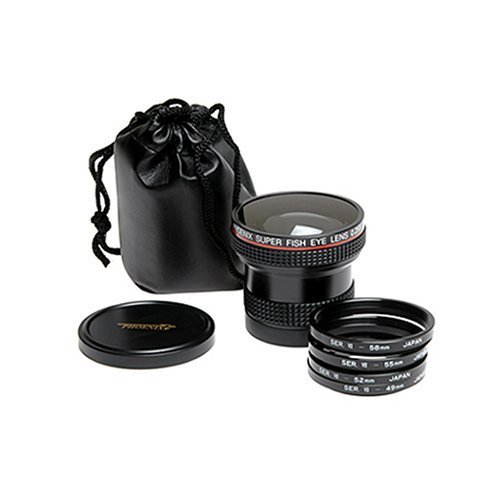 -. Feature : 0.25X magnification makes your standard or wide angle focal length lens an ultra-wide "fisheye" lens / Mounts to the filter threads of almost any digital or film SLR lens with series 7 adapter rings / 4 adapter rings are included: 49mm / 52mm / 55mm & 58mm / With 0.25X: 50mm Lens = 152 degrees; 35mm Lens = 166 degrees; 28mm Lens = 175 degrees angle-of-view / Made in Japan with high quality all glass lens construction