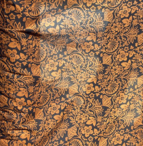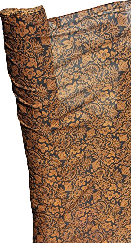 RaanPahMuang Thin Gauze Summer Cotton Printed Curling Nature Flowers and Fronds, Black Yellow