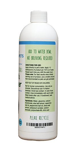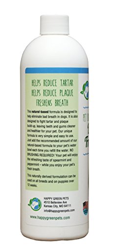 -. Title : Happy Green Pets Dental Water Additive Breath Freshener For Dogs & Cats | Vet Recommended Natural Formula | Removes Plaque & Tartar, Improves Oral Hygiene & Gum Health, & Freshens Breath | Made In USA