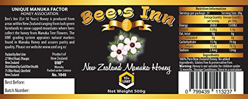 GUARANTEED! Manuka Honey UMF 10+ 500g. Lab-Certified UMF10+ Manuka Honey from New Zealand by a New Zealand Independent Laboratory. Each Manuka Honey batch is Independently Verified, Tested, Traceable and Licensed.