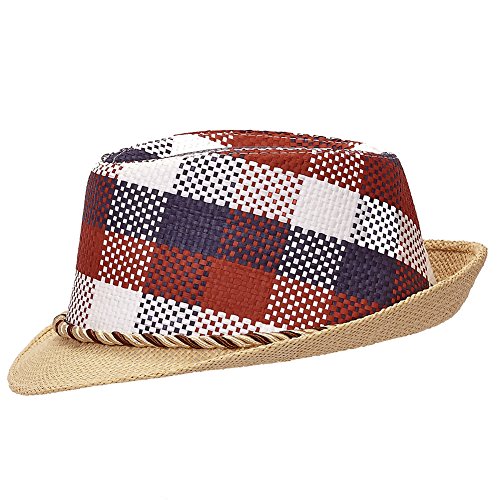 (Port Classic)/Accessories/Hats/DIRECT FROM USA/Tropical Woven Plaid Straw Fedora Hat