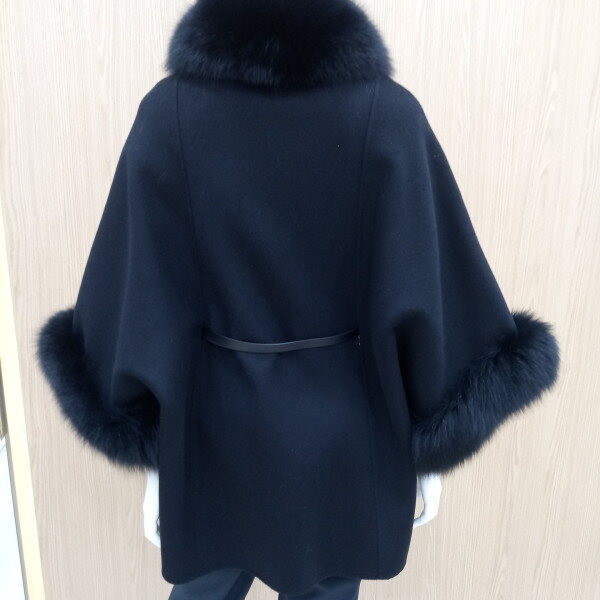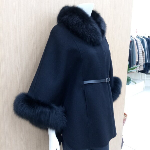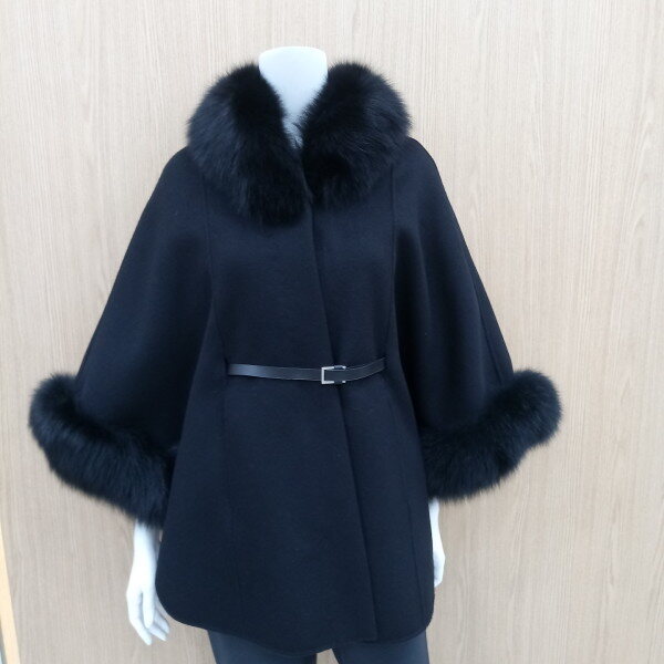 고급스러운케이프망또코트로 풍성한 폭스퍼가 넥크라인과 소매부분을 감싸주어 럭스리한 분위기를 느낄수 있어요총기장 72cm