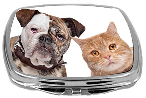 Rikki Knight English Bulldog and a Red Cat in Front of a White Background Design Compact Mirror, 17 Ounce