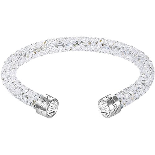 If you are looking for instant glamour with a stylish edge, this Swarovski cuff is the piece for you. It is lavishly adorned with brilliant silver-toned crystals that bring unparalleled sparkle to your wrist. With its open shank silhouette and stainless steel capped ends, this bracelet will add a shining finish to your look. Brilliant on its own, this cuff can also be stacked with other bracelets for a more dramatic feel.Feature