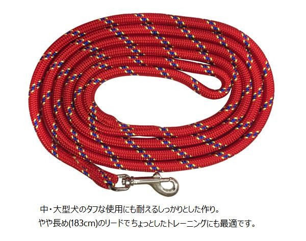 マウンテンロープで作られた丈夫なリードです。やや長め(183cm)のリードでちょっとしたトレーニングにも最適です。中・大型犬のタフな使用にも耐えるしっかりとした作り!! |