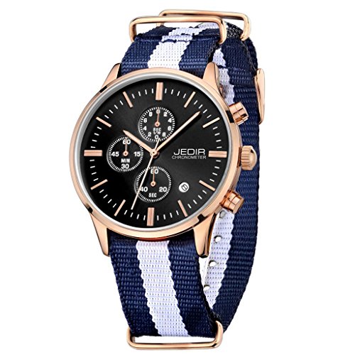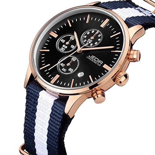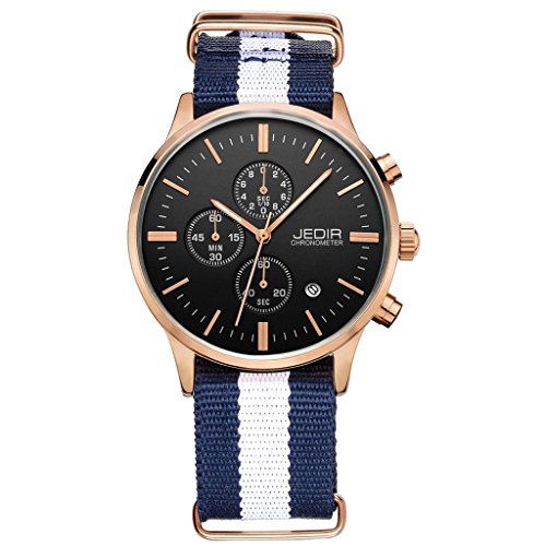 GuTe Quartz GuTe출품 맨즈 쿼츠 손목시계 NATO 나일론 밴드 날짜 크로노그래프 멋쟁이 심플 네이비 블루 로즈 골드