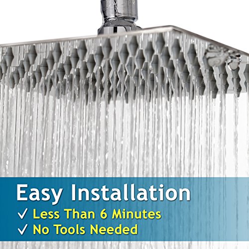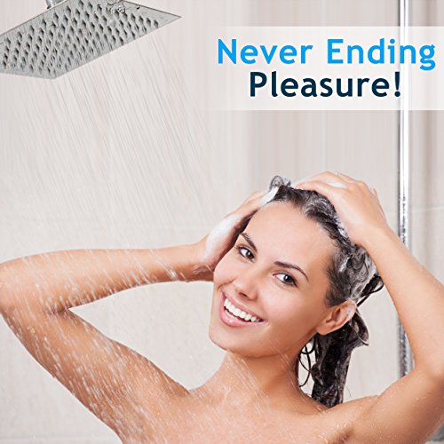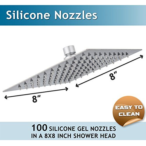 ENDURING QUALITY – Rain Shower Head’s surface is made of rust proof SUS 304 stainless steel with 100 easy to clean silicone-gel nozzles