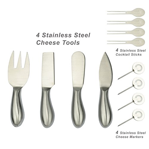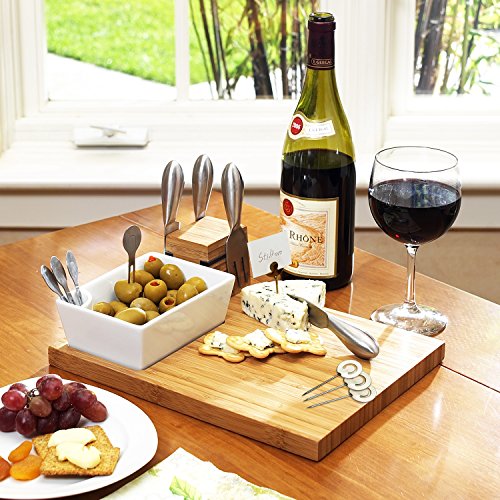 Bamboo Cheese Board with 4 Stainless Steel Cheese Tools, Ceramic Bowl, Cocktail Sticks and Cheese markers by Picnic at Ascot