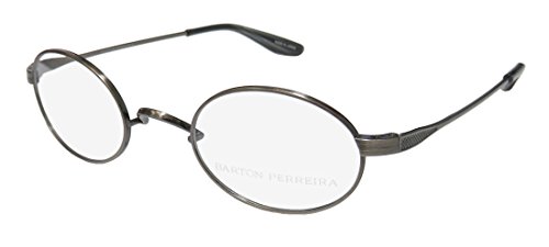 Brand: Barton Perreira Style: Chaplin Gender: unisex Frame Type: full-rim Frame Material: titanium Case: original The frame is fully rx-able and can be fitted with prescription and/or tinted lenses at most optical stores. Please note that factory demo lenses have a logo stamped on them in ink. This frame provides comfortable fit and flatters a variety of face shapes. The hardware parts of the eyeglasses are made of titanium. This material is known for it's durability, light weight and corrosion resistance. This metal is also hypoallergenic. It is recommended by eye doctors for people with sensitive skin who otherwise might be allergic to standard stainless steel metal frames. Original case is included. The glasses are made in Japan. These eyeglasses retail for $780.00 at upscale stores that carry designer frames. Save your money and get them here! The pictures cannot fully reflect the beauty of this piece of designer eyewear. These eyeglasses look even more elegant in real life. 0 |