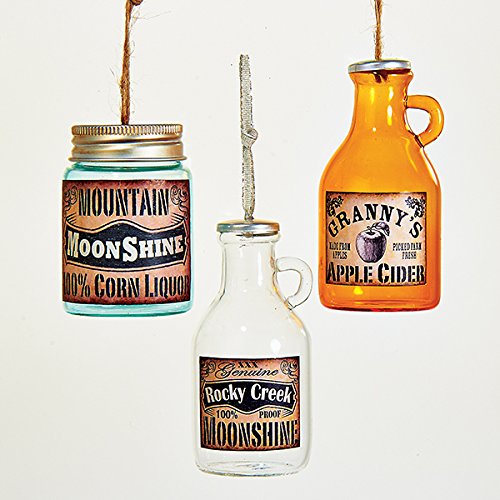 Kurt Adler 3 Assorted Glass Moonshine And Cider Jar And Jugs Christmas Tree Ornaments