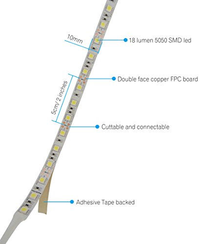 High Brightness: 300 pieces super bright SMD 5050 LED (18 lumen per led) ; Long life of 50,000 hours with 2 years warranty