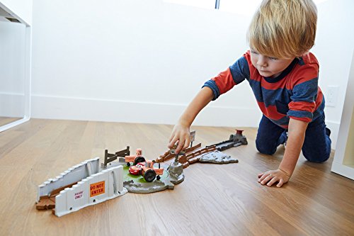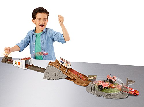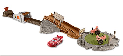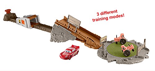 -. Binding : Toy -. Brand : Disney -. EAN : 0887961559927 -. Feature : Disney/Pixar's Cars 3 race set with true to movie features and themed accessories / Track is over 3' long, has multiple training modes and a launcher / Stunt fun includes motorized tractor obstacles and a bridge to jump / Comes with a Lightning McQueen vehicle. Others sold separately, subject to availability / Great gift for any Disney/Pixar Cars fan! -. IsAdultProduct : 0 -. ItemPartNumber : 900 FLK03 -. Label : Mattel -. Manufacturer : Mattel -. Model : FLK03 -. MPN : FLK03 -. NumberOfItems : 1 -. PackageQuantity : 1 -. PartNumber : FLK03 -. ProductGroup : Toy -. ProductTypeName : TOYS_AND_GAMES -. Publisher : Mattel -. ReleaseDate : 2017-10-20 -. Studio : Mattel -. Title : Disney Pixar Cars Smokey's Tractor Challenge Playset -. UPC : 887961559927 -. Warranty : 1 year warranty against manufacturer defects