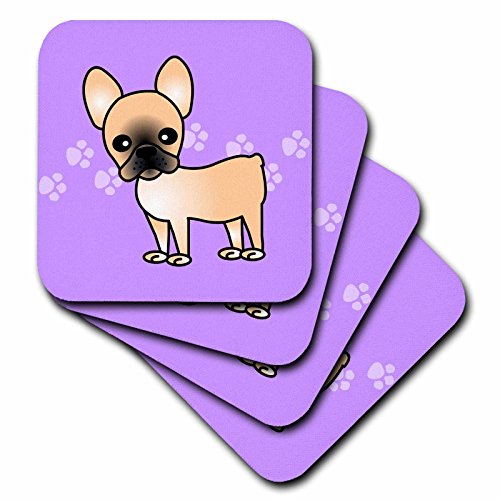 3dRose cst_25345_1 Cute Black Masked Fawn Cream French Bulldog Purple with Pawprints-Soft Coasters, Set of 4