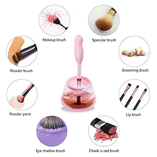 - 5.Simple Operation: The makeup brush cleaner is very easy to use. Only 3 steps to clean makeup brushes: ① insert the brushes into the brush spinner; ② pour water and soap into the bowl;③ dip and spin to clean, raise and spin to dry. The cute and small styling is convenient for you to hold.