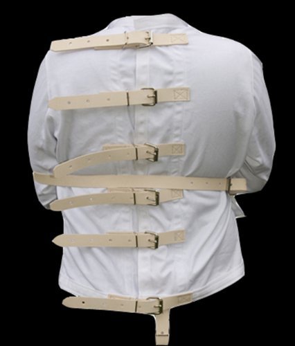 Studio : Monkey Dungeon Publisher : Monkey Dungeon Binding : Apparel Product Description The entire piece is sewn together using upholstery thread. Stitching is reinforced for strength. Nickel plated buckles make this straight jacket completely adjustable. This jacket is built to last. All Monkey Dungeon straight jackets are made in the U.S.A. 6 leather straps going down the back Leather straps and heavy duty buckles Reinforced with upholstery thread and strong polypro webbing Front leather strap. This can be made in any of the following colors of canvas(straps remain tan): Black, White, Burgundy, Red, Gray, Pink, or Natural. Email me at the time of purchase if you want a color other than the one shown. 0