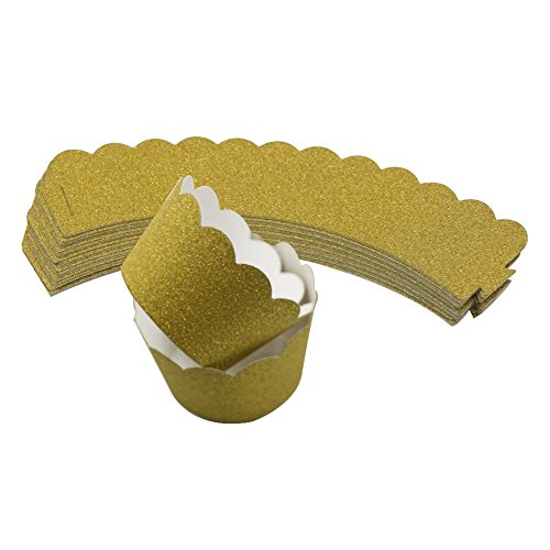 Mybbshower Gold Metallic Glitter Cupcake Wrapper Standard Size for Wedding Parties Pack of 24