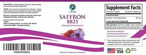 Saffron Extract 8825 (Vegetarian) - Best All Natural Appetite Suppressant That Works - 88.5 mg per capsule - 30 Day Supply