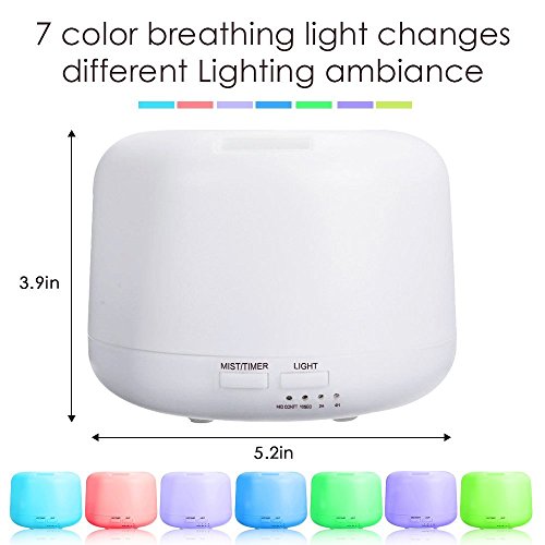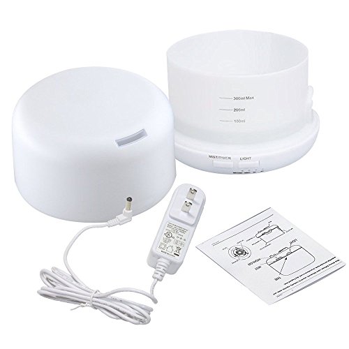Alaysi 300ml Ultrasonic Aromatherapy Essential Oil Diffuser Humidifier with 7 LED Color Lights, Auto Shut Off Feature & 4 Timer Settings