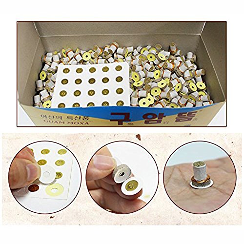 Moxibustion Mini Stick-on Moxa (1100pcs) (Mild thermal stimulus) Convenience at home, ease of use fine-grained mugwort ※ DESCRIPTION · Quantity : 1,100 pcs Weight : 450g Size(height) : 10mm(about) · Size(diameter) : 10mm(about) Condition : New (Made In Korea)