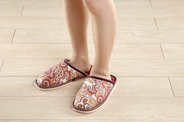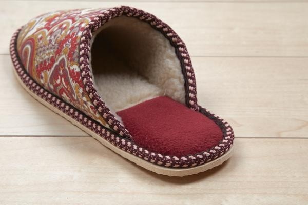 中だけがもこもこなので、見た目はすっきりとしたシルエットのペイズリー柄スリッパです。