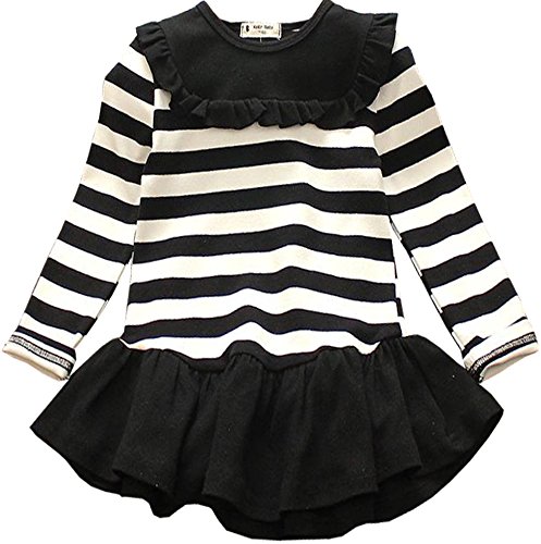 -. Title : FireflyShop 子供服 女の子 セーラー 長袖 ワンピース チュニック モノトーン ボーダー フリル ミニ丈 ドレス