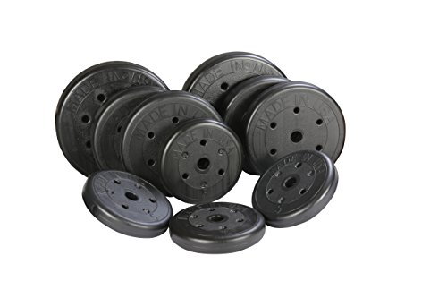 Build strength and muscle mass effectively with the comprehensive 105 lb. set of weight training gear from US Weight. Made in the United States, this set arrives conveniently packaged in a single box and includes (2) 20 lb. weights, (4) 10 lb. weights, (4) 5 lb. weights, (6) locking spring clips, (2) dumbbell bars, (1) 55-inch 4 lb. straight bar, and an informative, easy-to-read user guide. Assembly is required. The heavy-duty barbell bar features textured, non-slip grip area for better control during lifting. Each polyethylene-coated weight is easy on your floor and rust-resistant. US Weight equipment includes a limited 90-day manufacturer’s warranty against defects in materials and workmanship. US Weight offers a variety of products geared toward making your strength and conditioning program as successful and enjoyable as possible.