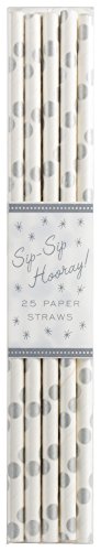 Party Partners 25 Count Paper Straw, Silver Dots