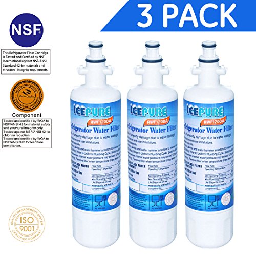 This is a 3 Pack Special! FREE UPGRADE TO PRIORITY MAIL SHIPPING! IcePure RFC1200A Replacement LG, Kenmore & more Instructions Press button to open filter cover Pull the old filter cartridge downward Remove and discard Hold the filter cartridge horizontally and push into the manifold until it stops Push filter up firmly until you cannot push up further Push filter cover until it clicks into place Run approximately 2.5 gallons of water through the filter and discard before use Filter Dimensions: OD: 1 5/8" Length: 7" Specifications: MATERIAL: NSF Coconut shell Activated Carbon MICRON RATE: 0.5 Micron OPERATING TEMP.: 29-125 F (4-52℃) MAX. OPERATING PRESSURE: 20-120psi FLOW RATE: 0.7 GPM FILTRATION LIFE: 6 months/400G *Depends on water quality and level of contaminants Replaces the following: 795.7205 79572032110 ADQ36006101 ADQ36006101-S ADQ36006101S ADQ36006102 ADQ36006102-S ADQ36006102S LT700P LFX31925ST LFX31945ST LFX25978ST LFX25991ST LFX28978ST LFX31925 LFX31925SW LFX33975ST LMX31985ST RWF1052 WSL-3 WSL3Feature