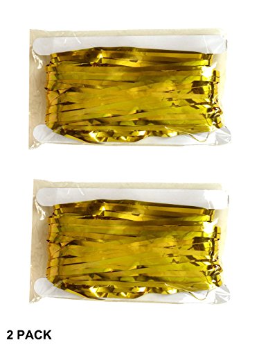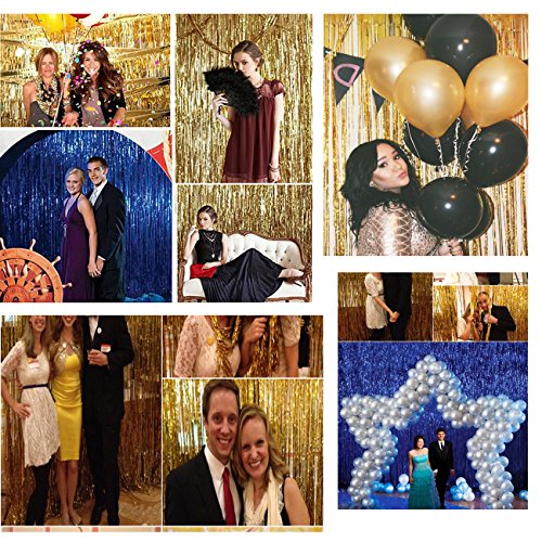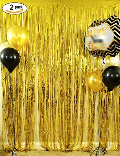 Langxun 3 ft x 8 ft Gold Foil Fringe Curtains | Photo Booth Background for Party, Prom, Birthday, Wedding, Event Decorations ( 2 Pack )