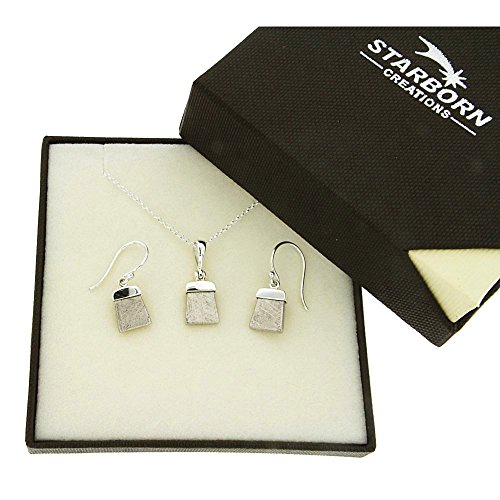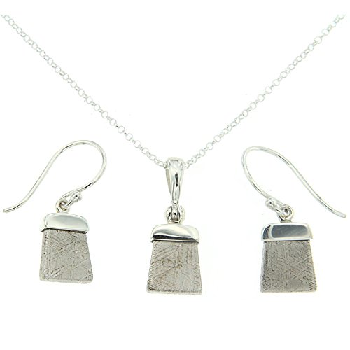 Sterling Silver Genuine Gibeon Meteorite Pendant and matching Earrings. 15 1/2" sterling silver chain.