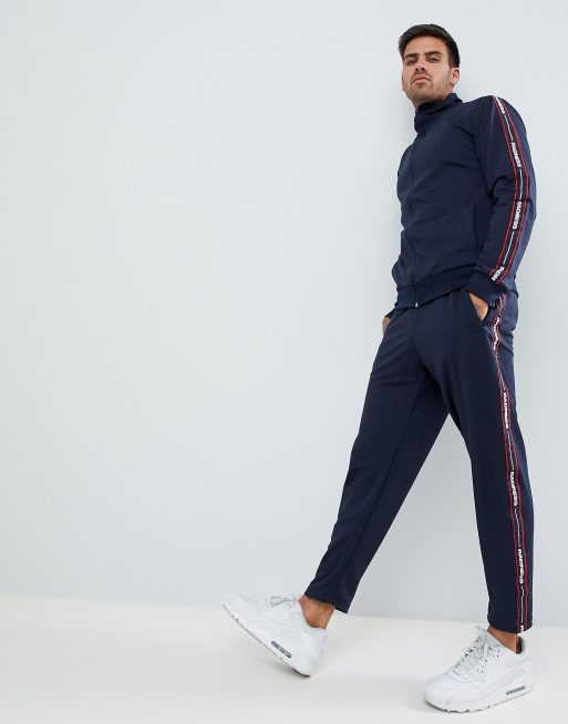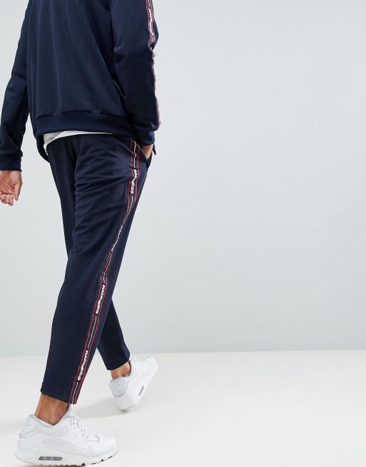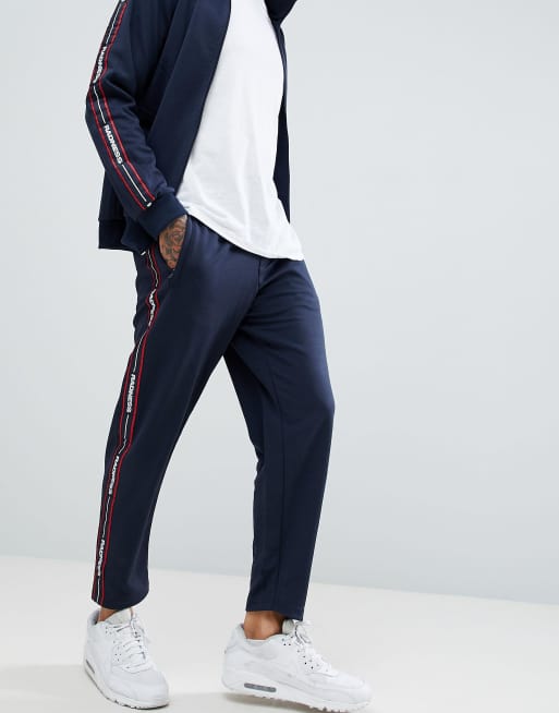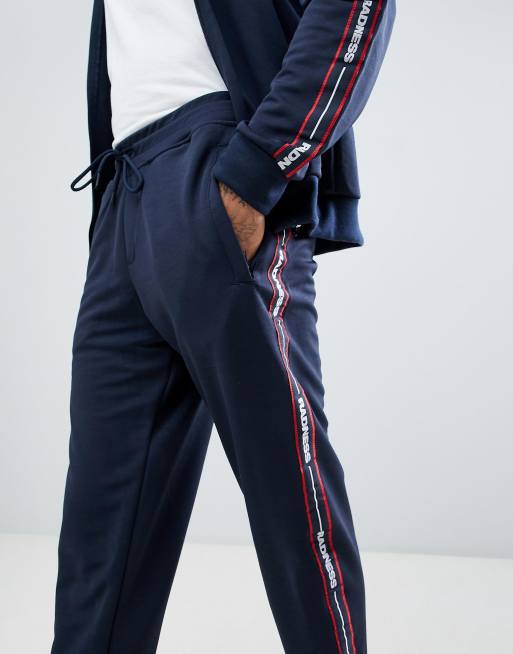 Pull&Bear Joggers With Slogan Side Stripe In Navy