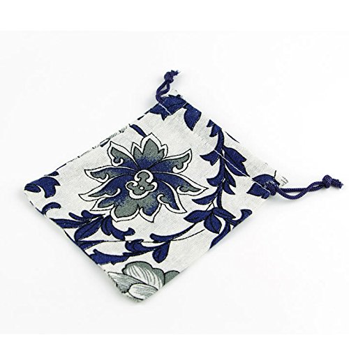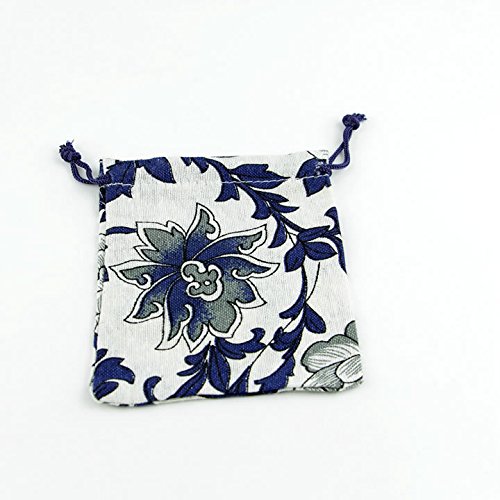 20pc Jewelry Navy Blue and White Flower Drawstring Jewelry Gift Bags 3x4"