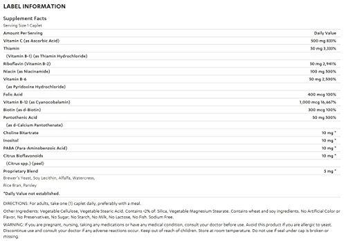 -. Title : Vitamin World Stress B-Complex with C-500mg Supports Energy Metabolism 60 Coated Caplets