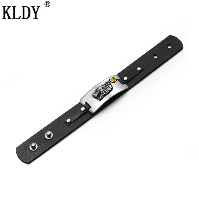 Texture:stainless steel Genuine Leather bracelet