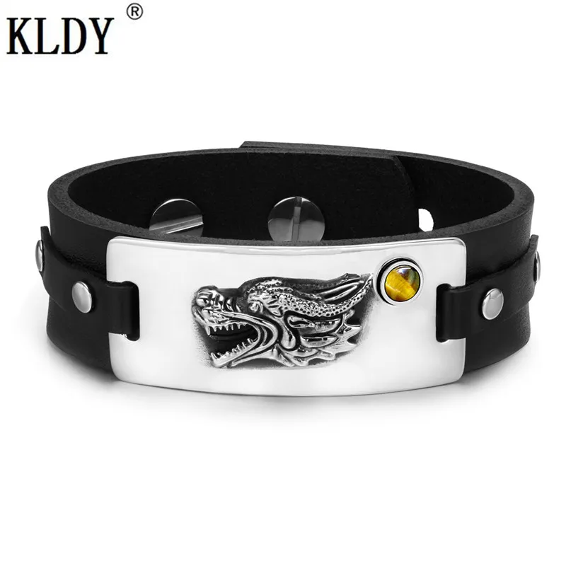 Shape:Courage Dragon Amulet Adjustable leather Bracelet