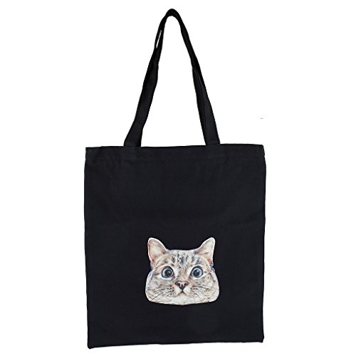 Lux Accessories Black Canvas Silly Funny Kitty Cat Print Shoulder Tote Bag