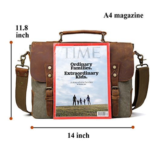 -. Brand : Tiding -. Department : mens -. Feature : High density retro canvas / Top quality Crazy Horse leather / One main bag with an iPad place and 2 large front pockets / Can hold A4 magazine, 14-inch laptop,textbooks,mobile phone and iPad / Magnetic quick snap buckles for easy to access -. ProductGroup : Apparel -. ProductTypeName : LAGE -. Title : Tiding Men Retro Canvas Leather 14 Inch Laptop Vintage Messenger Bag Satchel Hobo Briefcase Cross Body Shoulder Bag